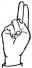 На ћирилици написано РАДОВАН КОЈОВИЋ састоји се из 14 слова [?]. Исписано ћириличном једноручном азбуком за глувонеме: